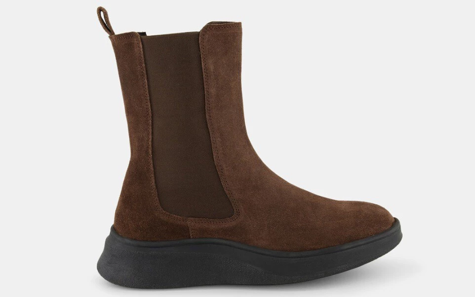 Estos botines son perfectos para cualquier ocasión. Confeccionados en ante marrón, llevan suela de goma gruesa que amortigua la pisada, sin cierre, con ajuste mediante goma lateral.