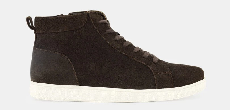 Un botín versátil que combina serraje y piel, con puntera redonda, cordones planos y clip trasero para fácil calce. Suela de goma resistente.