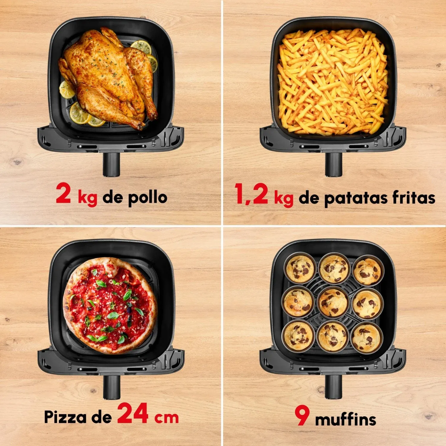 - Versatilidad: Desde cocinar pollo crujiente, vegetales asados o incluso postres, con un solo aparato.