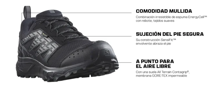 - Tecnología Gore-Tex: protección contra el agua y la humedad, ideal para días lluviosos y caminatas en terrenos mojados.